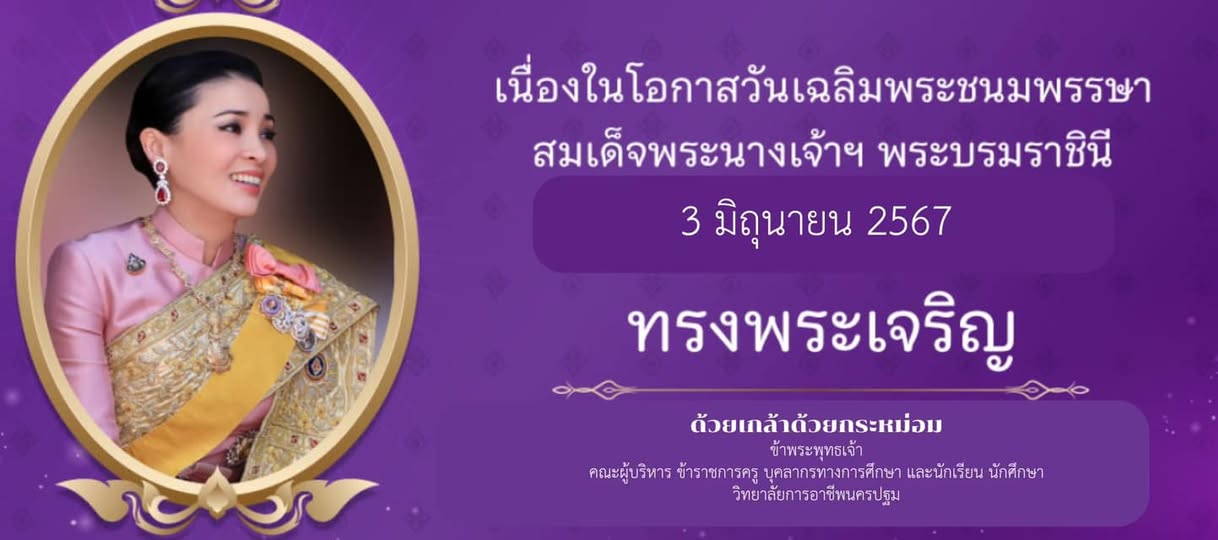 25.เนื่องในโอกาสวันเฉลิมพระชนมพรรษา สมเด็จพระนางเจ้าฯ พระบรมราชินี 3 มิถุนายน 2567 ทรงพระเจริญ ด้วยเกล้าด้วยกระหม่อม ข้าพระพุทธเจ้า คณะผู้บริหาร ข้าราชการครู บุคลากรทางการศึกษา และนักเรียน นักศึกษา วิทยาลัยการอาชีพนครปฐม