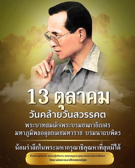 18. 13 ตุลาคม วันคล้ายวันสวรรคต พระบาทสมเด็จพระบรมชนกาธิเบศร มหาภูมิพลอดุลยเดชมหาราช บรมนาถบพิตร