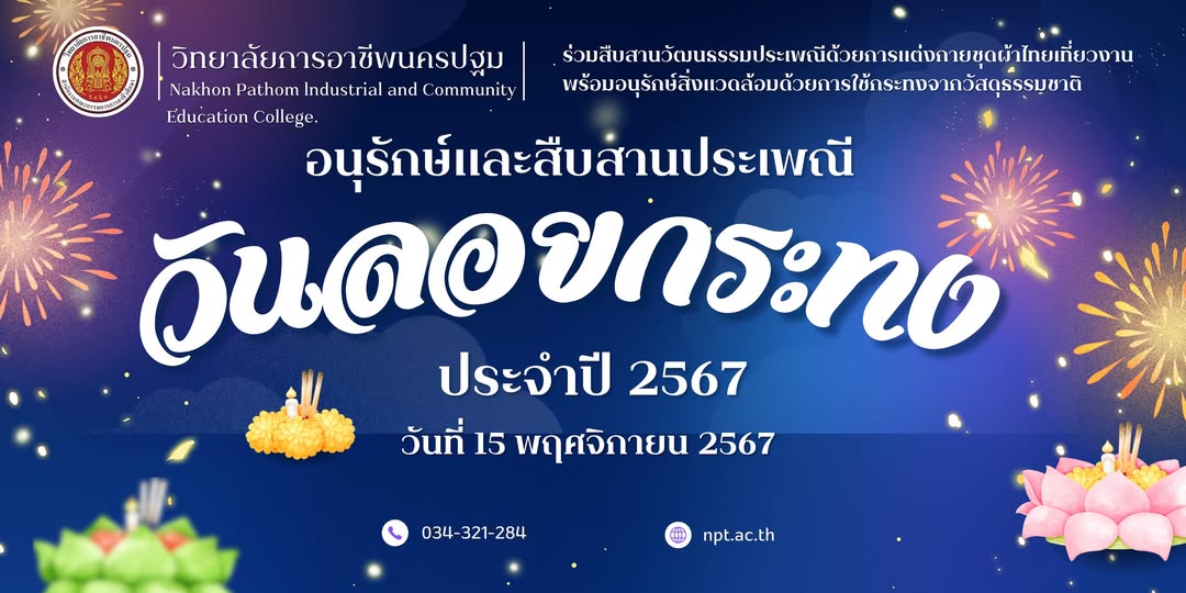 15.วิทยาลัยการอาชีพนครปฐม ขอเชิญชวนร่วมสืบสานประเพณีลอยกระทง ประจำปี 2567