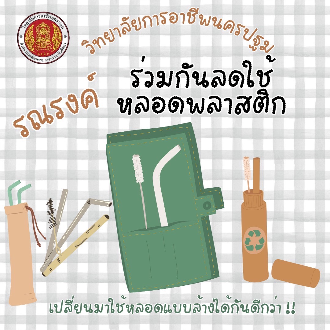 13.วิทยาลัยการอาชีพนครปฐม รณรงค์ร่วมกันลดใช้หลอดพลาสติก เปลี่ยนมาใช้หลอดแบบล้างได้กันดีกว่า !!