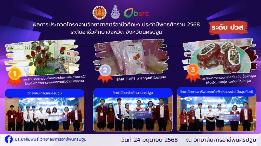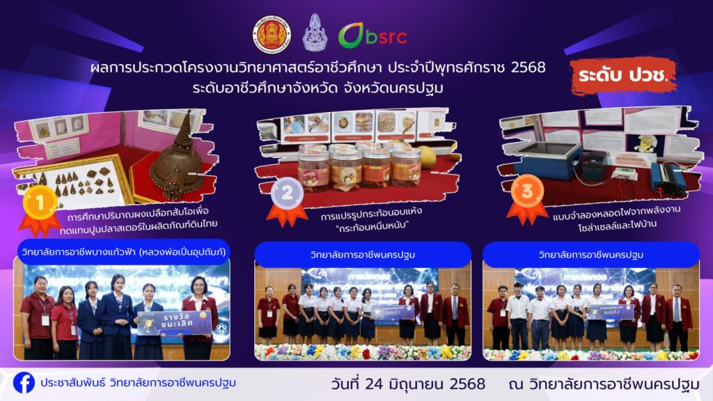 📌วิทยาลัยการอาชีพนครปฐม : รายงานข่าว 📆วันอังคารที่ 24 มิถุนายน 2568 ผลการประกวดโครงงานวิทยาศาสตร์อาชีวศึกษา ประจำปีพุทธศักราช 2568 ระดับอาชีวศึกษาจังหวัด จังหวัดนครปฐม ณ วิทยาลัยการอาชีพนครปฐม #ประกวดโครงงานวิทยาศาสตร์ #วิทยาลัยการอาชีพนครปฐม #อาชีวฝีมือชนคนสร้างชาติ #งานประชาสัมพันธ์