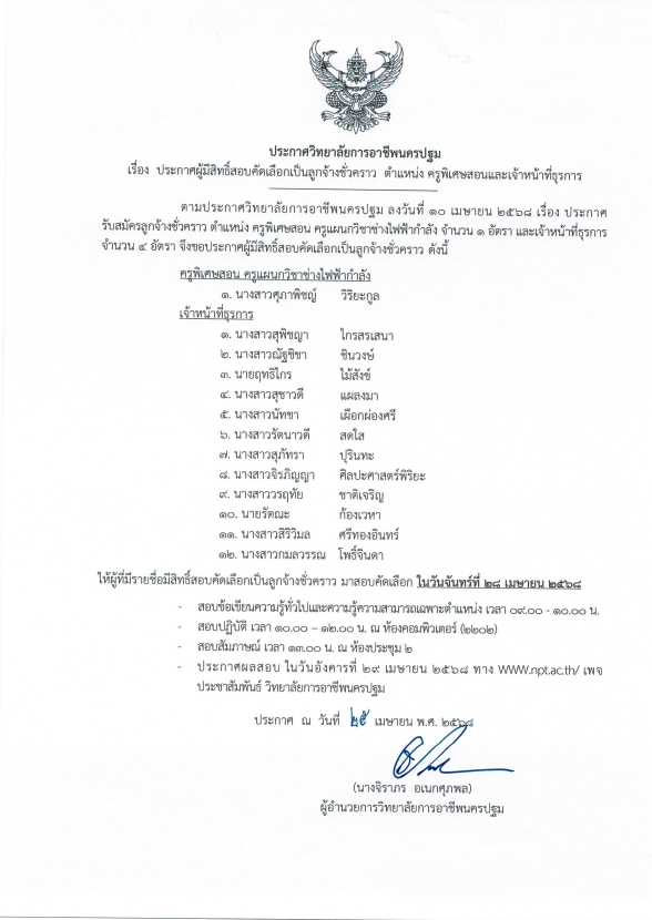 ประกาศวิทยาลัยการอาชีพนครปฐม