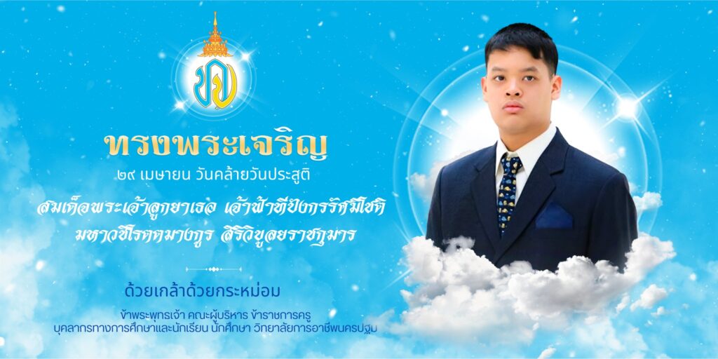 ขอเชิญชวนร่วมลงนามถวายพระพร สมเด็จพระเจ้าลูกยาเธอ เจ้าฟ้าทีปังกรรัศมีโชติ มหาวชิโรตตมางกูร สิริวิบูลยราชกุมาร เนื่องในโอกาสวันคล้ายวันประสูติ วันที่ 29 เมษายน 2568 ผ่านระบบออนไลน์ ที่เว็บไซต์หน่วยราชการในพระองค์ : https://wellwishes.royaloffice.th/home/index/43