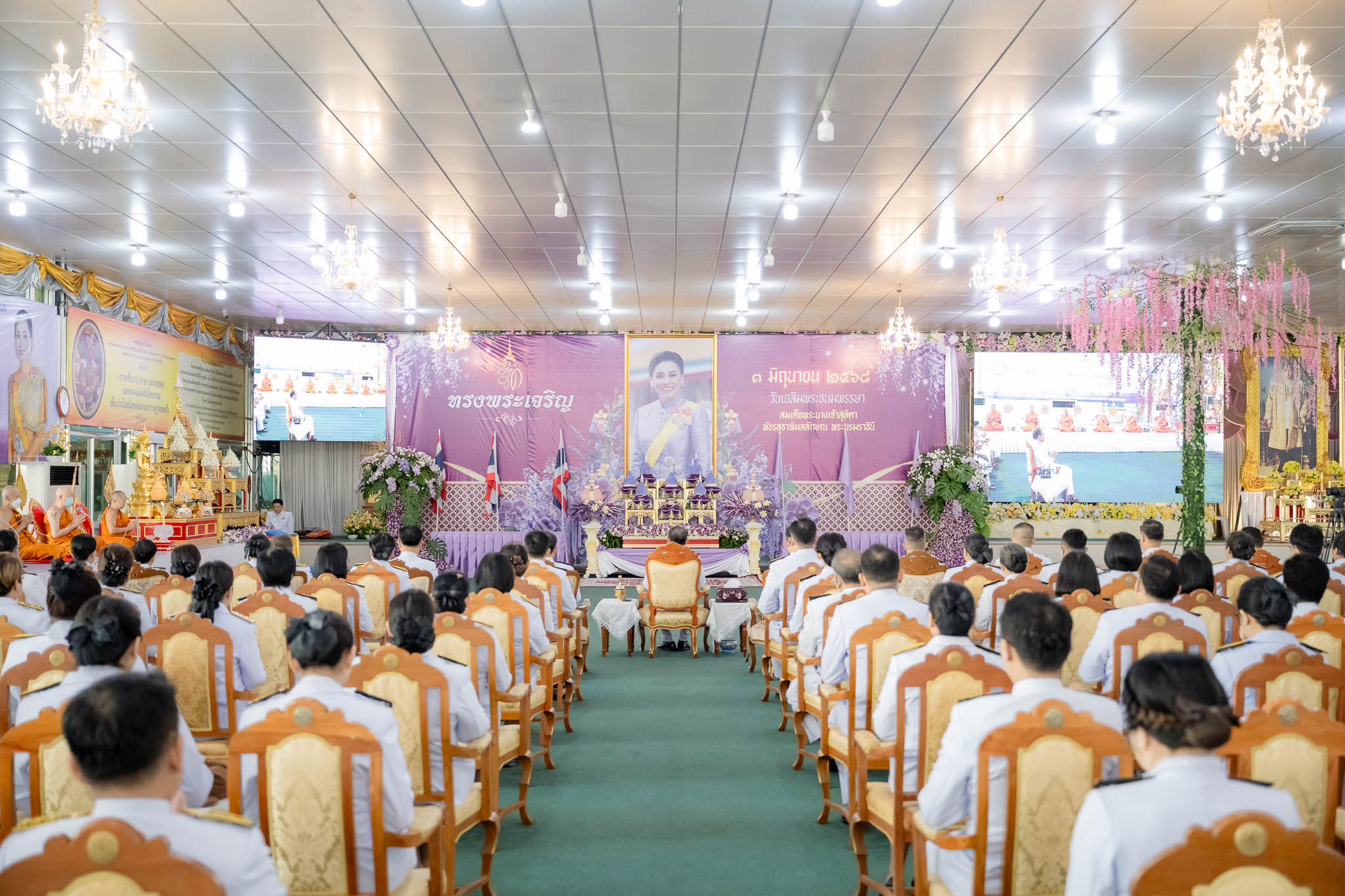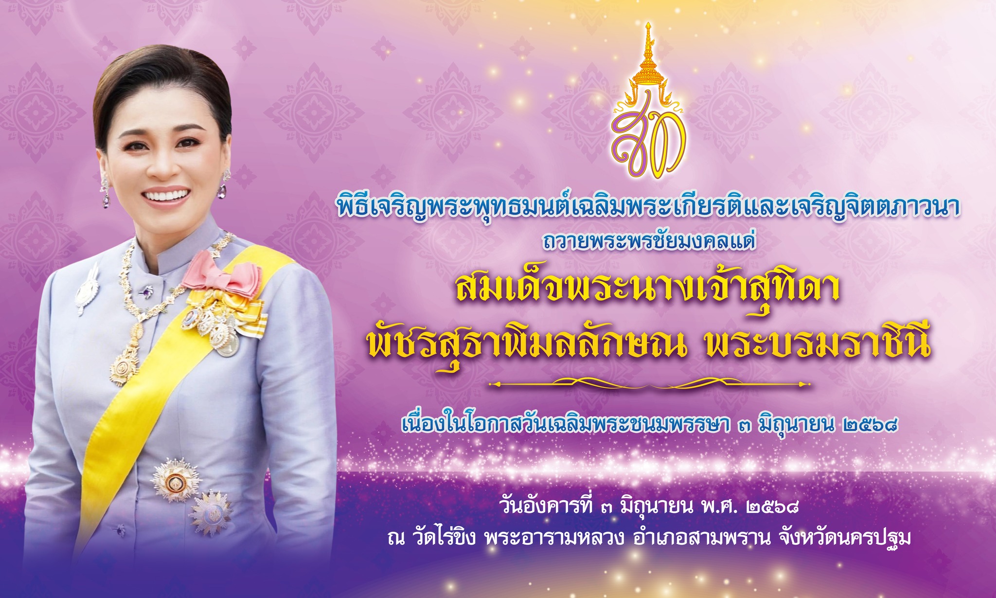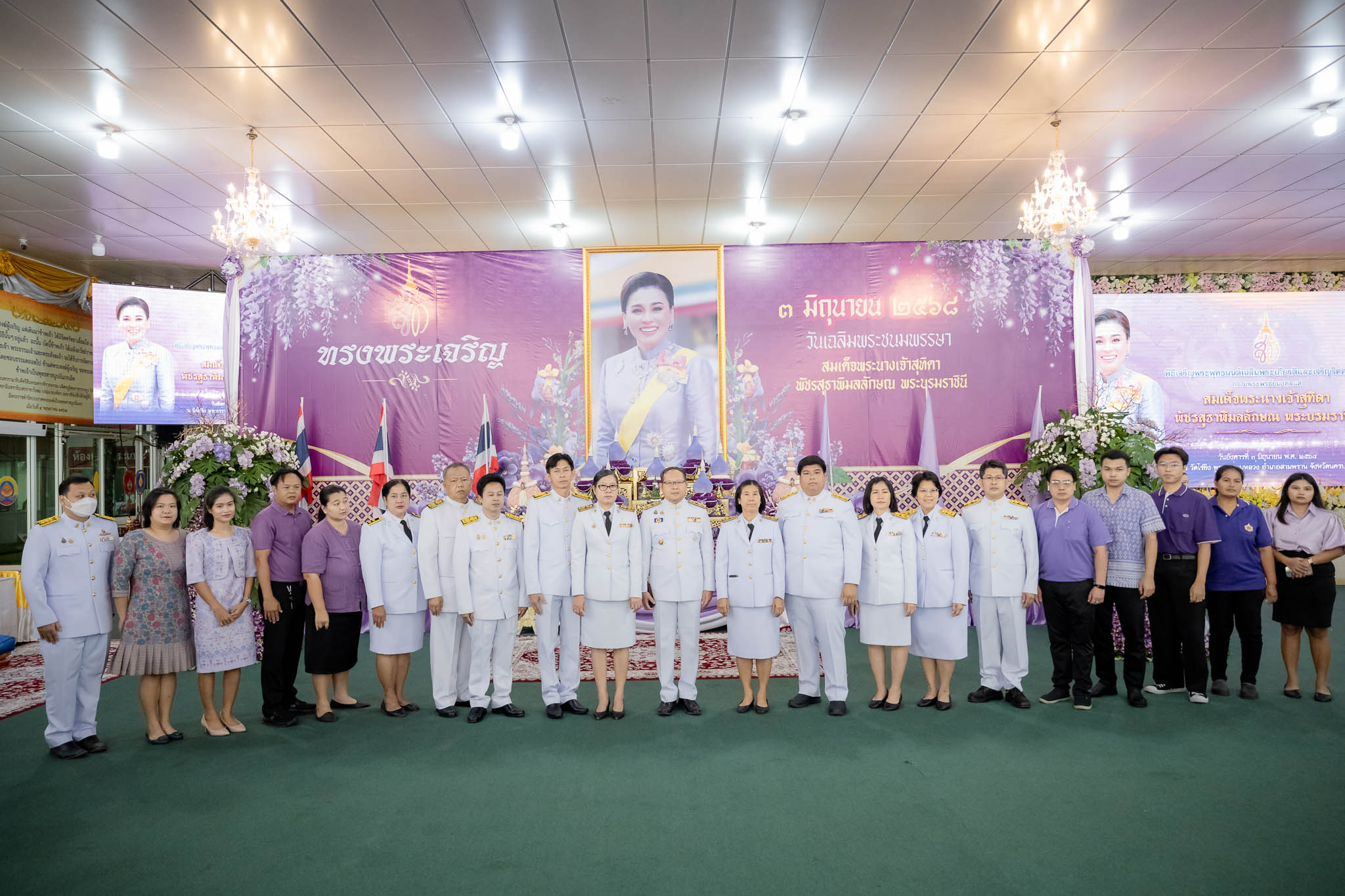 วันที่ 3 มิถุนายน 2568 เวลา 15.30 น. ดร.จิราภร อเนกศุภพล ผู้อำนวยการวิทยาลัยการอาชีพ พร้อมด้วยนางสาวปรรณพัชร์ วิชาชาติ รองผู้อำนวยการฝ่ายแผนงานและความร่วมมือ คณะครู และบุคลากรทางการศึกษา กลุ่มปฏิบัติกิจกรรมกลุ่มที่ 2 เข้าร่วมพิธีถวายเครื่องราชสักการะและวางพานพุ่ม และพิธีจุดเทียนถวายพระพรชัยมงคล สมเด็จพระนางเจ้าสุทิดา พัชรสุธาพิมลลักษณพระบรมราชินี เนื่องในโอกาสวันเฉลิมพระชนมพรรษา 3 มิถุนายน 2568 โดยมีว่าที่ร้อยโท อรรถชล ทรัพย์ทวี นายอำเภอสามพราน เป็นประธานในพิธี ณ มณฑลพิธีวัดไร่ขิงพระอารามหลวง ต.ไร่ขิง อ.สามพราน จ.นครปฐม