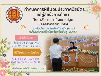 งานมหกรรมหมู่บ้านรักษาศีล 5 ต้นแบบ และการจัดจำหน่ายผลิตภัณฑ์สัมมาชีพชุมชน OTOP ระดับประเทศ 🔔 ระหว่างวันที่ 21 – 25 มกราคม 2566 ณ อาคารราชวิริยาลังการ วัดไร่ขิง พระอารามหลวง อำเภอสามพราน จังหวัดนครปฐม 🔔 พบกับ การแสดงศิลปวัฒนธรรม ๔ ภาค ,นิทรรศการ “หมู่บ้านรักษาศีล5 ต้นแบบ ทั่วประเทศ”,เลือกชมเลือกซื้อสินค้า OTOP จากทั่วประเทศ —- #นิทรรศการหมู่บ้านรักษาศีล5 #วัดไร่ขิง #นครปฐม #วิทยาลัยการอาชีพนครปฐม