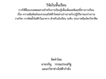 การใช้สื่อแบบผสมผสานส าหรับการเรียนรู้เพื่อเพิ่มผลสัมฤทธิ์ทางการเรียน เรื่อง ความสัมพันธ์ของกระแสไฟฟ้าไหลผ่านร่างกายกับปฏิกิริยาของร่างกาย รายวิชา การติดตั้งไฟฟ้าในอาคาร ส าหรับนักเรียน ระดับ ประกาศนียบัตรวิชาชีพ