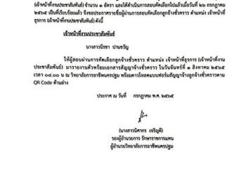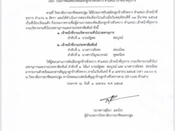 ประกาศผลสอบคัดเลือกลูกจ้างชั่วคราว ตำแหน่งเจ้าหน้าที่ธุ […]