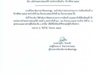 ประกาศ แจ้งกำหนดการสอบแก้ตัว ประจำภาคเรียนที่ 1 ปีการศึ […]