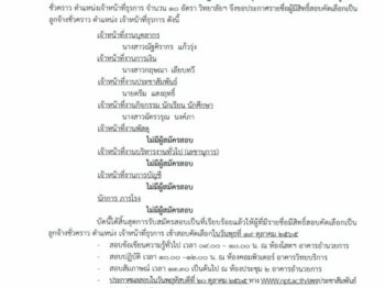 ประกาศรายชื่อผู้มีสิทธิ์สอบคัดเลือกเป็นลูกจ้างชั่วคราว […]