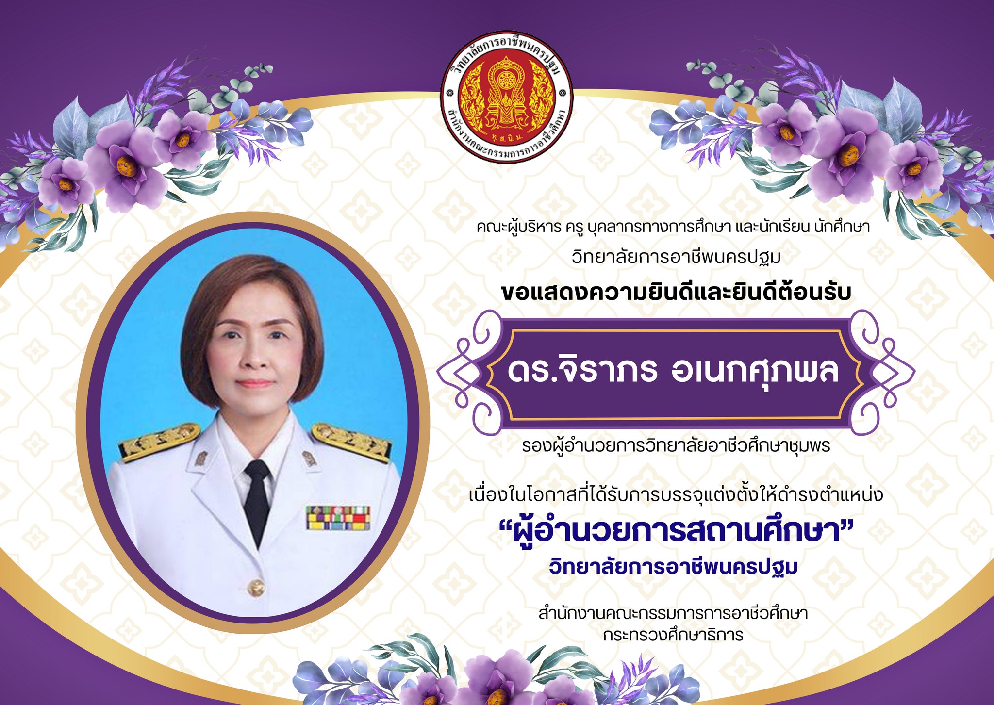 5 มิถุนายน 2568 วิทยาลัยการอาชีพนครปฐม : แสดงความยินดี วิทยาลัยการอาชีพนครปฐม ขอแสดงความยินดีกับ นายกฤษฎา รุ่งคูหา ครู วิทยาลัยการอาชีพนครปฐม ได้รับเครื่องหมายเชิดชูเกียรติ “คุรุสดุดี” ประจำปี 2568 ประเภท ครู จาก สำนักงานศึกษาธิการจังหวัดนครปฐม