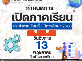 5 มิถุนายน 2568 ประกาศวิทยาลัยการอาชีพนครปฐม เรื่อง ประกาศผลการสอบคัดเลือกเป็นลูกจ้างชั่วคราว ตำแหน่ง ครูพิเศษสอน (แผนกวิชาการตลาด)